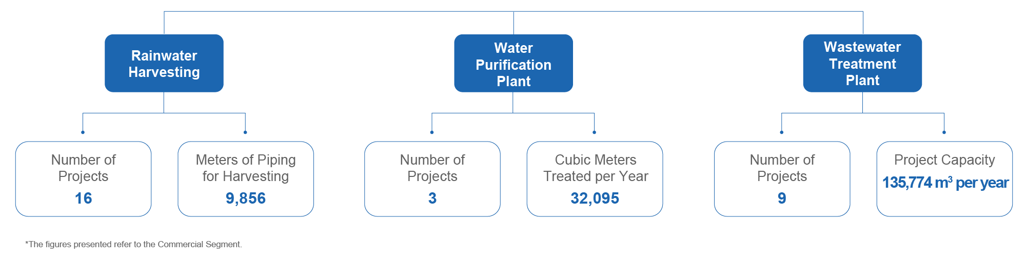 In line with our commitment to responsible and sustainable business practices, we have begun implementing key projects at some of our shopping centers: the installation of wastewater treatment plants, water purification facilities, and rainwater harvesting systems. Our investment in treatment and capture systems represents a significant step toward a more sustainable and responsible future.